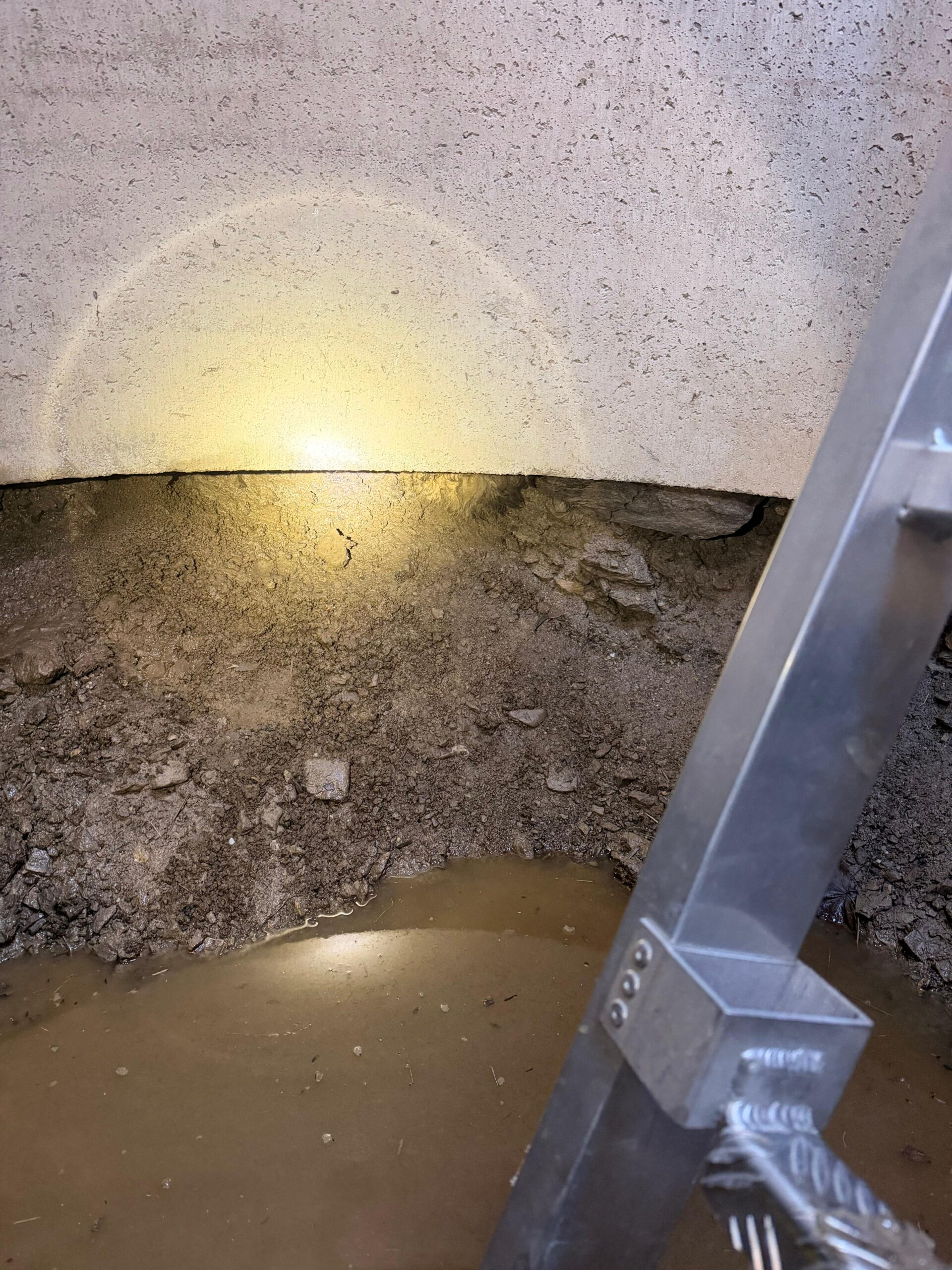 Nach dem Eintreffen am Einsatzort stellten wir fest, dass die Katze zwischen dem Betonschachtring und dem Erdreich eingeklemmt war.