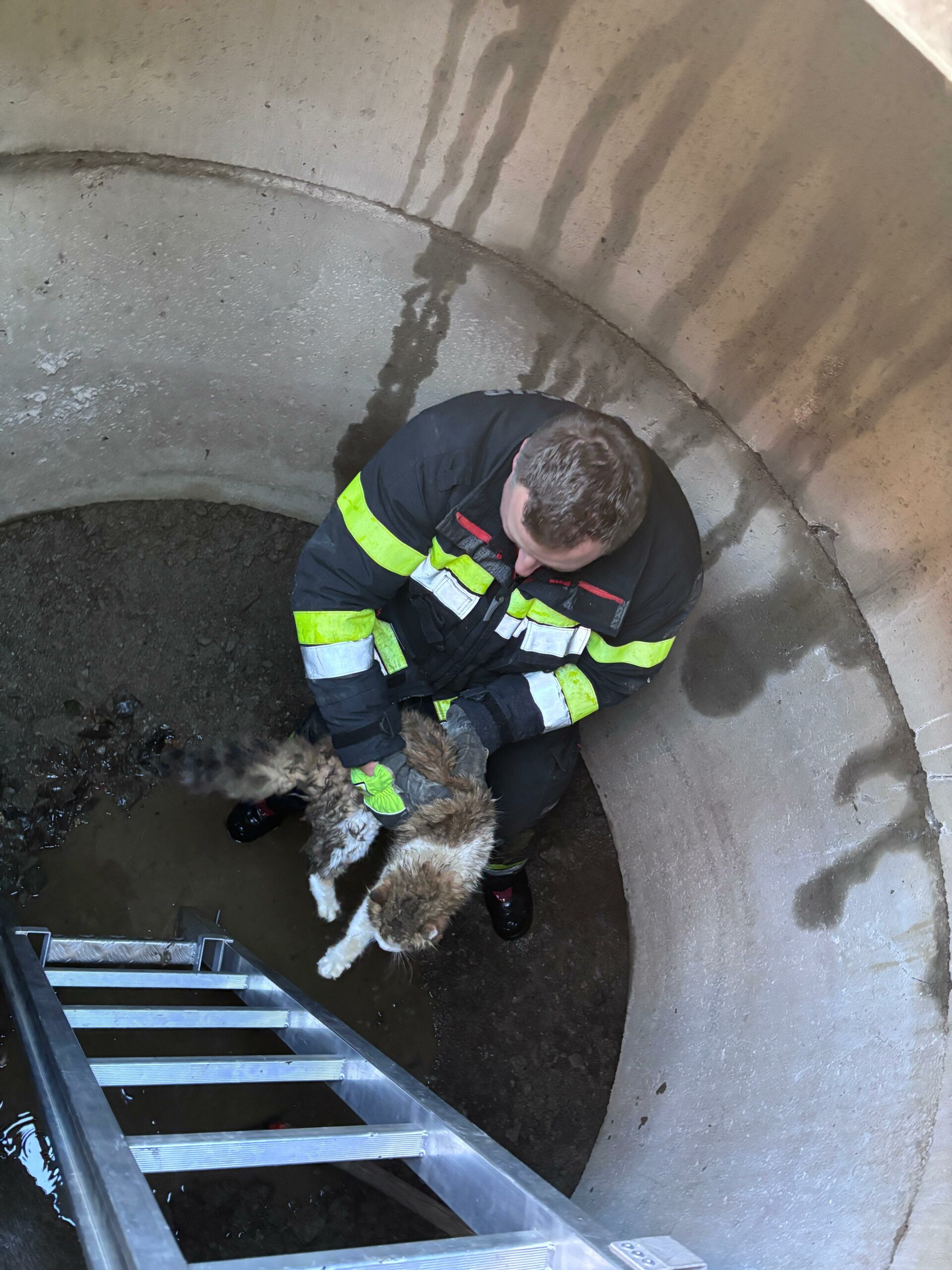 Mit gezielten Maßnahmen konnte die Katze rasch und unverletzt aus dem Schacht befreit werden.
