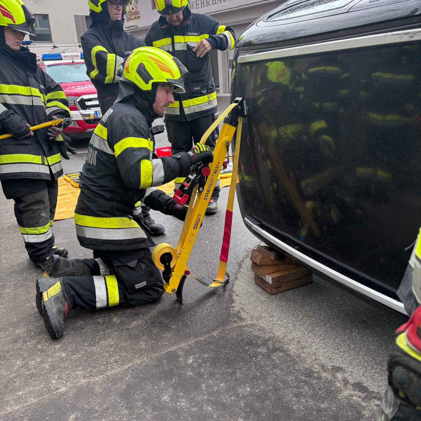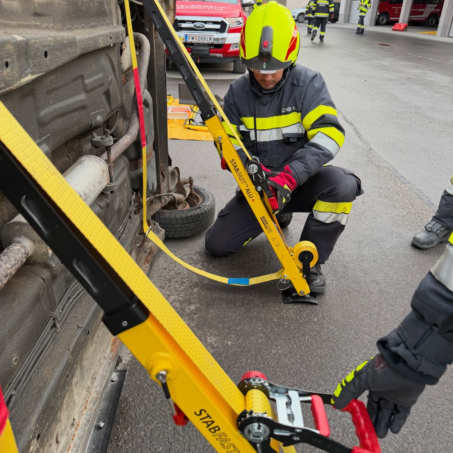 Behandelt wurden dabei insbesondere das Absichern von Verkehrswegen sowie sicheres Arbeiten bei technischen Einsätzen. Ein weiterer Schwerpunkt lag auf dem Sichern und Stabilisieren von verunfallten Fahrzeugen – sowohl mit dem Stab-Fast-System als auch mit alternativen Methoden.