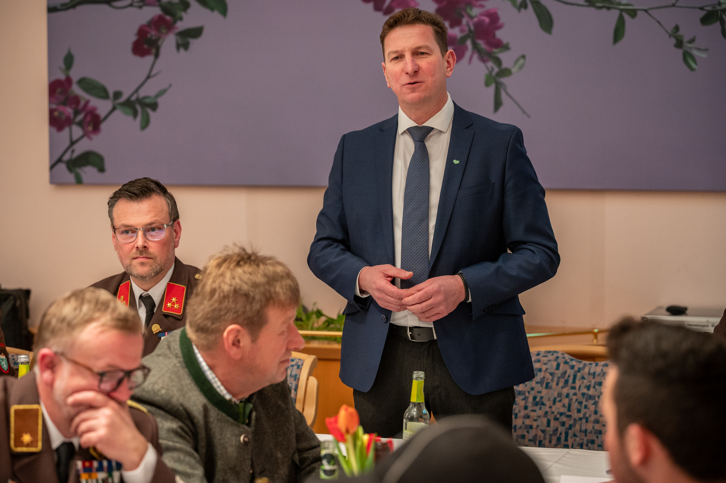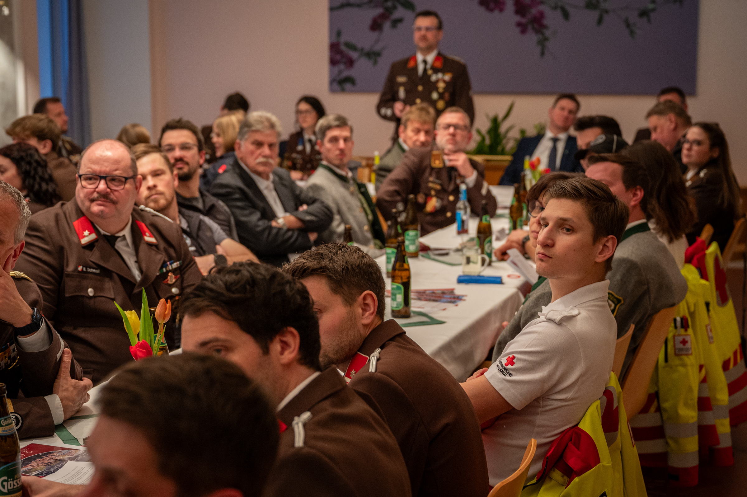 Unter den Ehrengästen befanden sich Bürgermeister Andreas Kühberger, Abg. z. NR, Vizebürgermeister Franz Lerchbaum sowie die Gemeinderäte GK Hansjörg Götzfried, Sebastian Ginter, Christoph Litscher, Peter Stangl und Karl Zenz. Vom Bereichsfeuerwehrverband Leoben nahmen OBR Alexander Siegmund, ABI Hans-Peter Moder sowie die Bereichssonderbeauftragten Josef Antoniol, Hansjörg Götzfried, Wolfgang Hirt und Stefan Riemelmoser teil. Als Landessonderbeauftragter für die Feuerwehrsanität konnte ABI Peter Friedmann begrüßt werden. Weiters konnten Abordnungen der Bergrettung, des Roten Kreuzes sowie der Ortsmusikkapelle Mautern willkommen geheißen werden. Neben Ehrenmitglied Peter Hölzl nahm auch Pfarrer Pater Egon Homann an der Versammlung teil.