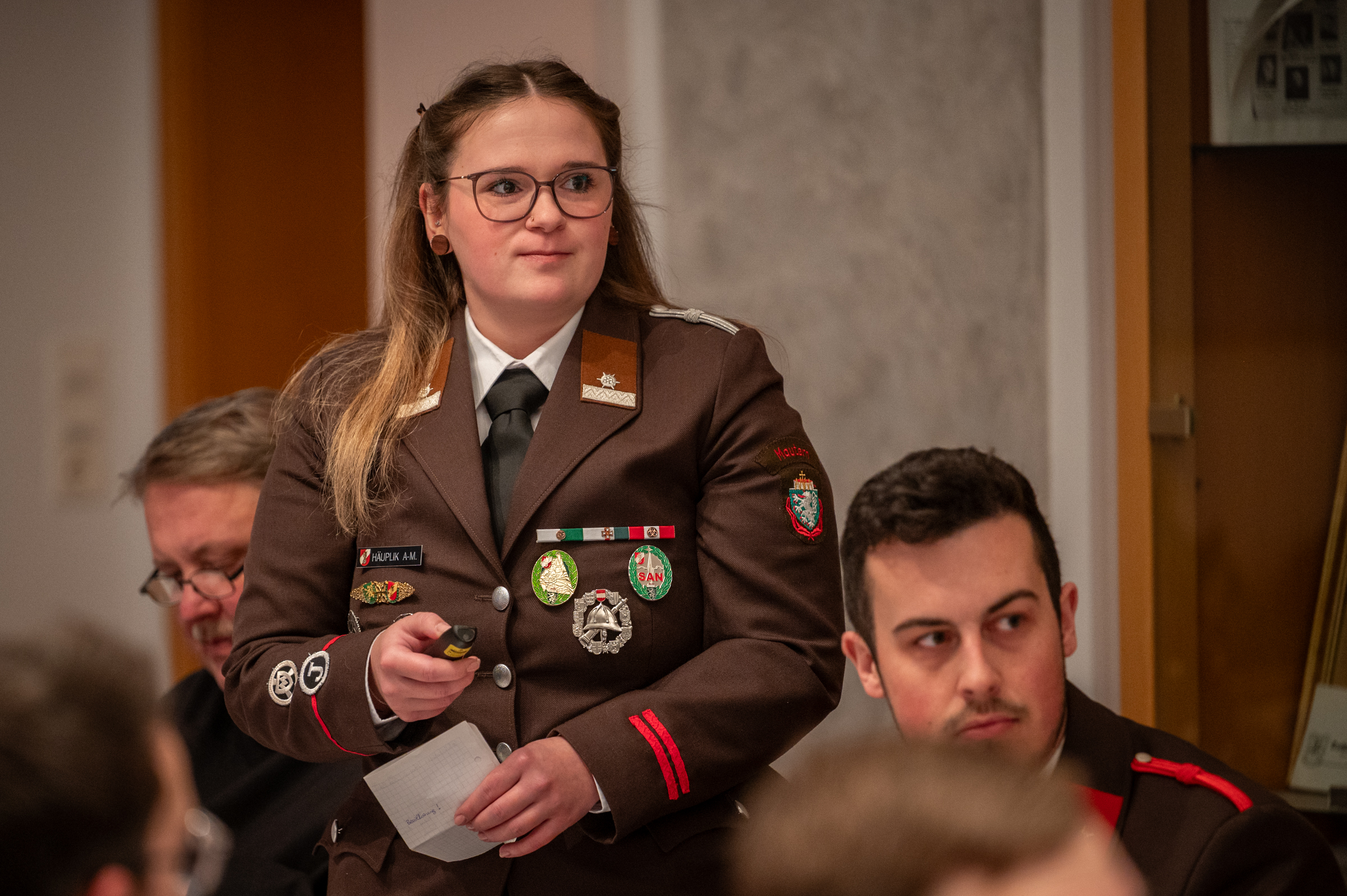 Es folgten die Berichte der Funktionäre. Kassierin LM d.V. Claudia Moisi präsentierte den Kassenbericht für das Jahr 2025 und konnte eine geordnete und transparente Gebarung darstellen. Jugendbeauftragte LM d.F. Anna-Marie Häuplik gab einen Überblick über die Aktivitäten und Erfolge der Feuerwehrjugend. Schriftführer BM Jürgen Graf stellte die neue interne Geschäftsordnung der FF Mautern vor, die künftig eine klare und zeitgemäße Grundlage für die interne Organisation bildet.