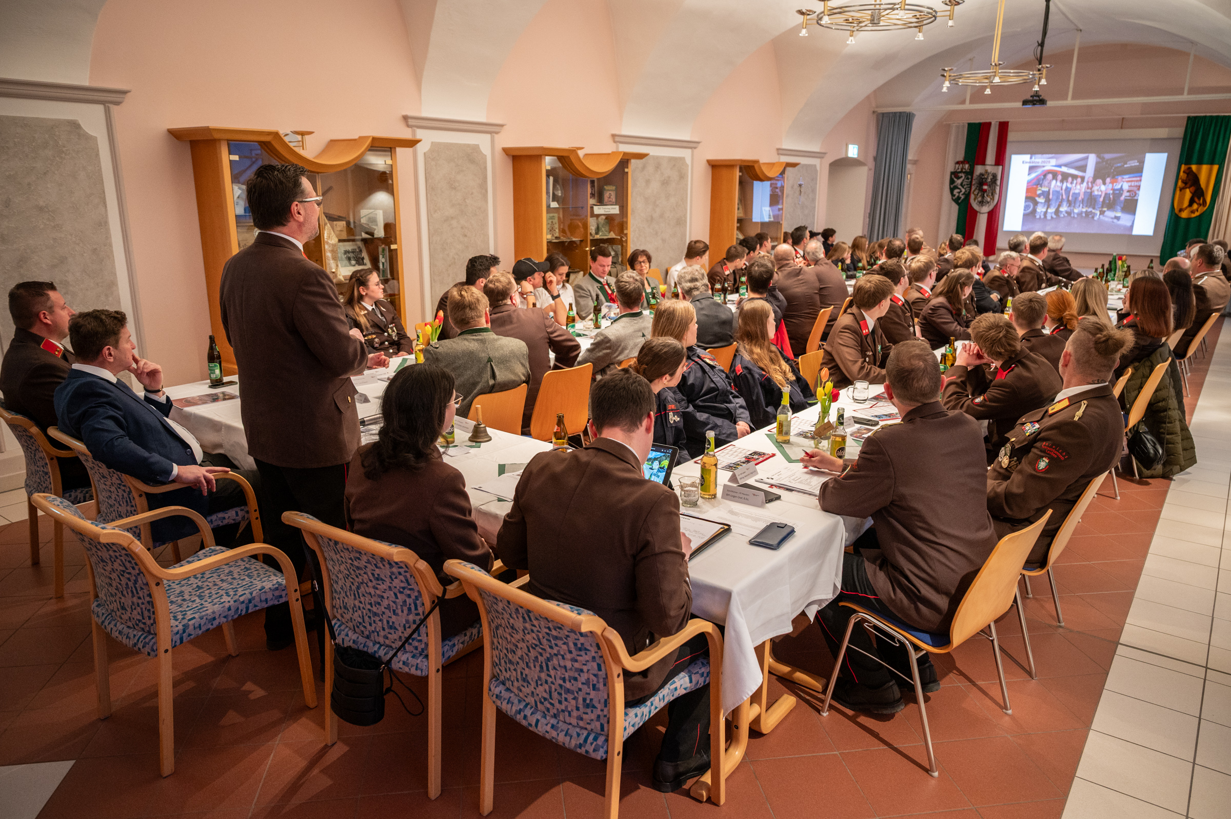 Nach der formellen Eröffnung, der Feststellung der Beschlussfähigkeit und einer Gedenkminute für die im vergangenen Jahr verstorbenen Kameraden EFKUR Koloman Viertler und OBR Ing. Johann Diethart folgten die Berichte des Kommandanten und der Funktionäre.
